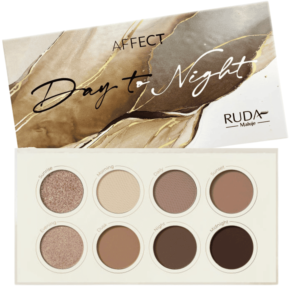 AFFECT Day to Night szemhéjpúder paletta - 16g: Legfelsőbb sokoldalúság - az AFFECT Day to Night paletta jól kiegyensúlyozott szemhéjpúderek választékát kínálja, amelyek könnyedén átválthatók a nappali finom megjelenésekről az esti drámai stílusokra. A 16g termék harmonikus keveréke meleg és hideg tónusoknak, matt és csillogó árnyalatokkal, intenzív pigmentáltsággal. Minden bőrtónushoz és alkalomhoz illik, tökéletes választás a professzionális minőségű smink szerelmeseinek.