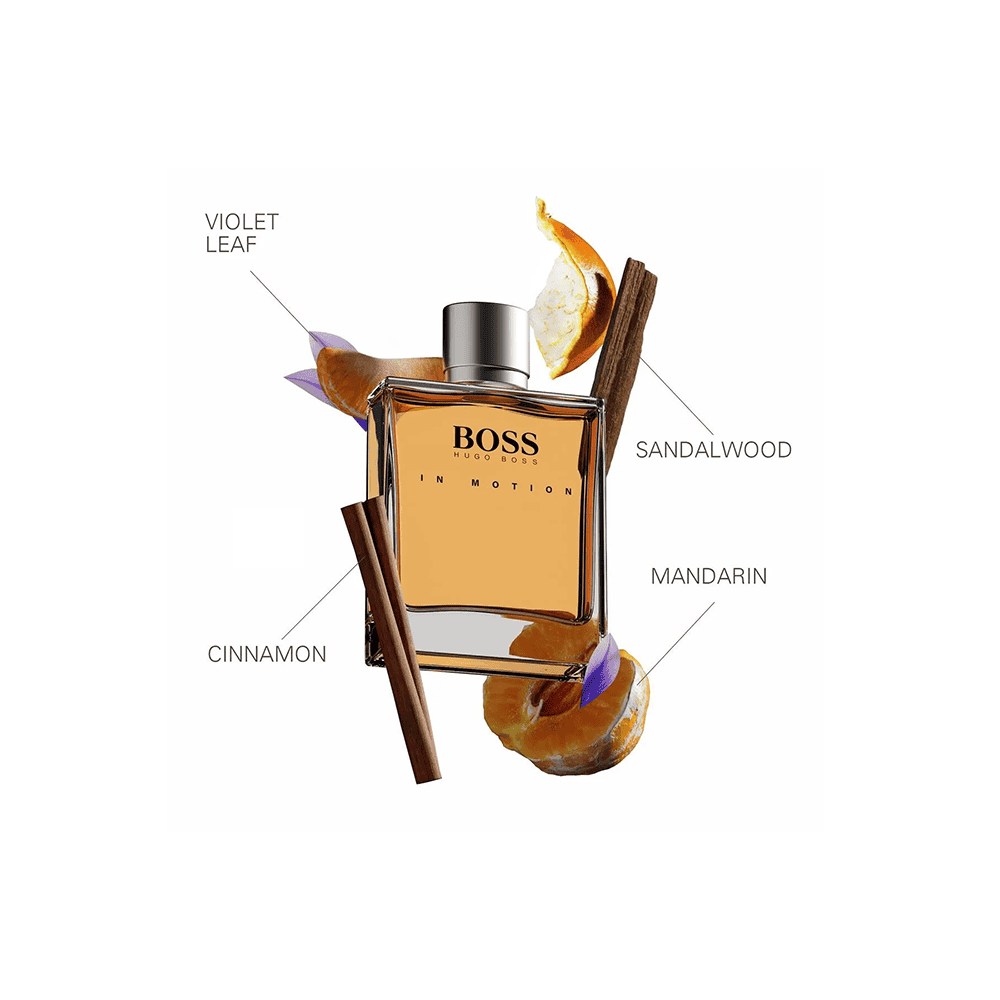 Hugo Boss In Motion Eau de Toilette 100 ml – egy keleties fougère illat, amelyet 2002-ben mutattak be. A parfüm citrusos nyitánya mandarinnal, naranccsal és bergamottal indul, a szívjegyei pedig fűszeresek, szerecsendióval, fahéjjal és kardamommal. Az alapjegyek meleg szantálfa, pézsma és vetiver. Ez egy energikus és modern illat, amely ideális nappali vagy esti viseletre.