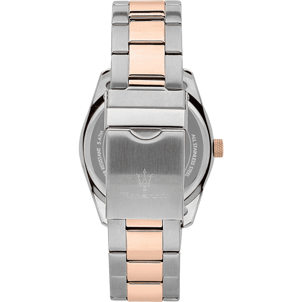 Fedezze fel az eleganciát és kifinomultságot a Maserati R8853151006 férfi karórával, amely az ATTRAZIONE kollekció része. Ez a kifinomult óra rozé arany PVD bevonatú rozsdamentes acélból készült, tökéletesen ötvözi a funkcionalitást a modern dizájnnal. Megbízható kvarc mechanizmussal rendelkezik, amely biztosítja az idő és a dátum kijelzését. A 43 mm-es tok átmérőjű, mélykék számlapot rozé arany részletek hangsúlyozzák, kellemes és vonzó kontrasztot nyújtva. Az acél karkötő elegáns kivitelű, összecsukható csattal záródik, amely biztonsági zárral van ellátva a felhasználó biztonsága érdekében. Az óra 5 ATM-ig vízálló, így ideális mindennapi használatra. A termék eredeti csomagolásban érkezik, és 2 éves garanciatanúsítványt tartalmaz. Válassza a Maserati órát, hogy stílust adjon bármilyen öltözékhez.