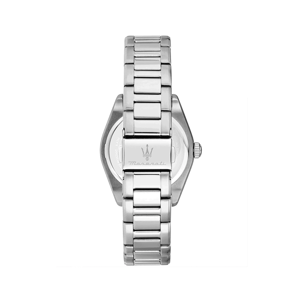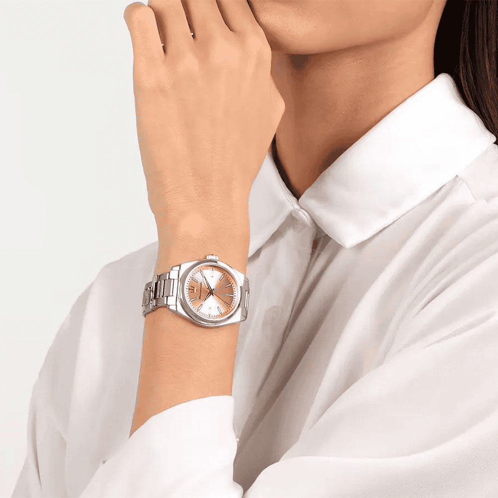 Maserati Velocita’ R8853152505 – egy elegáns és kifinomult női karóra, kiváló minőségű rozsdamentes acélból készült, pontos kvarc szerkezettel. A 35 mm-es barackrózsaszín számlapot ellenálló ásványi kristály védi, amelyet rejtett záródású acél karkötő egészít ki. 5 ATM vízállósággal rendelkezik, így ideális mindennapi viseletre. Eredeti Maserati dobozban kerül szállításra, 2 év garanciával.